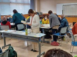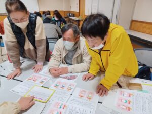また、グループワークでは「災害ボランティアマッチングゲーム」を使った「マッチング班」の想定で、様々な課題やハプニング(ニーズ)に対して、どう対応し、どのようにコーディネートしていくかをいろんな立場の参加者と一緒に考える訓練を行いました。この研修を通して、災害訓練の積み重ねが、自分たちに出来ることを想起させ行動に移すプロセスになる事を学びました。